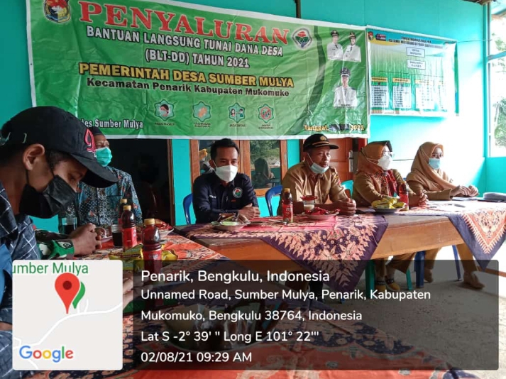 Hadir dalam acara tersebut PJs. Kepala Desa Sumber Mulya, Ketua dan Anggota BPD, Babinsa, Pendamping Desa (PD), Pendamping Lokal Desa (PLD) dan Seluruh Perangkat Desa serta Seluruh KPM yang telah terdaftar sebagai penerima BLT di Desa Sumber Mulya.