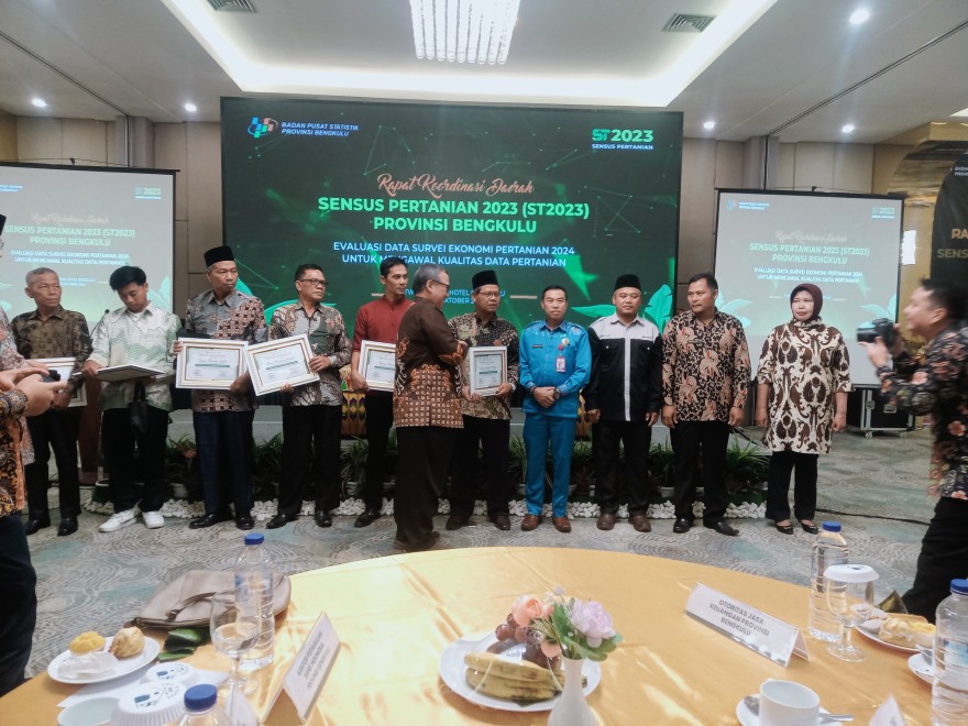 Hadir dalam kegiatan tersebut Inspektur Utama BPS Pusat Bapak Dadang Hardiwan, Sekretaris Daerah Provinsi Bengkulu Bapak Isnan Fajri, S.Sos, M.Kes, Kepala BPS Provinsi Bengkulu Bapak Ir. Win Rizal, M.E, Kepala BPS Kabupaten/Kota se-Provinsi Bengkulu dan Kepala Desa penerima penghargaan Desa Cantik Tahun 2024 di Provinsi Bengkulu. Dalam sambutannya Kepala BPS Provinsi Bengkulu Bapak Ir. Win Rizal, M.E menyampaikan apresiasi dan ucapan terimakasih kepada Kepala Desa peserta program Desa Cantik Tahun 2024 yang telah berpartisipasi dan berkolaborasi dalam mensukseskan Program Desa Cantik. "Kami berharap kepada Desa yang tergabung dalam Program Desa Cantik untuk terus berkolaborasi dan bekerjasama dengan BPS, khususnya yang ada di Kabupaten/Kota dalam Provinsi Bengkulu". tutupnya.
